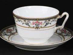 JAPON. KOKURA İMALAT DAMGALI. TABAK VE FİNCAN ÇEVRESİ RENKLİ ÇİÇEKLERLE DEKORLU.