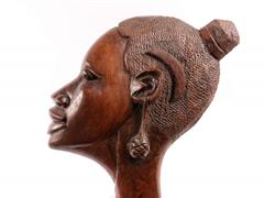 20. YY. AFRİKA ETNİK SANATI. KAZIMA VE OYMA İŞÇİLİKLİ. KADIN BÜSTÜ. 42X32 CM.