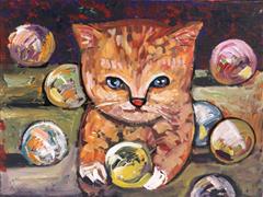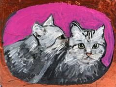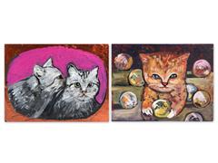 KEDİLER. MUKAVVA ÜZERİ YAĞLIBOYA. İMZALI. 30X40 CM.
