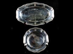 FRANSIZ. ODİOT VE MİNERVA İMALAT DAMGALI. 49X31,5 CM. İNİSİYALLİ. AĞIRLIK 1.438 GR. ÇAP 30 CM. AĞIRLIK 792 GR. TOPLAM AĞIRLIK 2.230 GR.