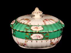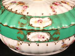 1 ADEDİ İNGİLİZ. SALOPIAN COALPORT. İMALAT DAMGALI. KAPAK VE GÖVDE ÜZERLERİ RENKLİ ÇİÇEKLER VE ALTIN YALDIZ EL DEKORLU. H 13-11 CM. ÇAP 22-14,5 CM.