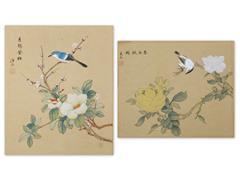 KUŞLAR. KAĞIT ÜZERİ KARIŞIK TEKNİK. UZAK DOĞU İMZALI. 30X25 CM.