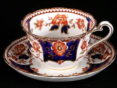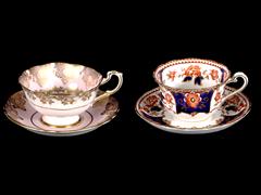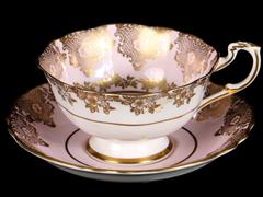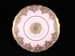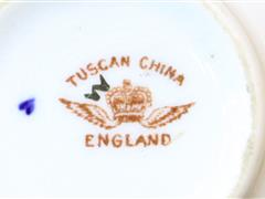 İNGİLİZ. TUSCAN İMALAT DAMGALI. RENKLİ ÇİÇEKLERLE EL DEKORLU. İNGİLİZ. PARAGON İMALAT DAMGALI. PEMBE ZEMİN ÜZERİ ALTIN YALDIZ EL DEKORLU.