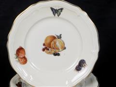 ALMAN. ROSENTHAL CHİPPENDALE İMALAT DAMGALI. TABAK İÇLERİ RENKLİ MEYVE VE ALTIN YALDIZ DEKORLU. ÇAP 20 -30 CM.