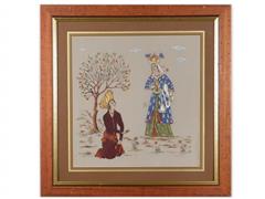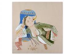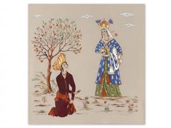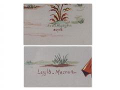 UYUYAN KADIN. İPEK ÜZERİ KARIŞIK TEKNİK. İMZALI 2011 T. 41X40 CM. LEYLA İLE MECNUN. İPEK ÜZERİ KARIŞIK TEKNİK. İMZALI. 2005 T. 41X40 CM