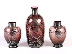 Lot 83 - 3 ADET GÜMÜŞ SIVAMA CAM VAZO