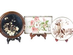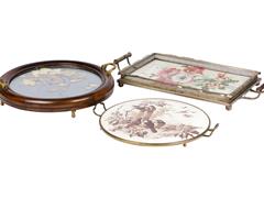 DİKDÖRTGEN FORMLU. İMALAT DAMGALI. SERAMİK TABANLI. METAL ÇERÇEVELİ VE ÇİFT TUTAMAKLI. 42,5X20,5 CM. YUVARLAK FORMLU. SERAMİK TABANLI. METAL ÇİFT TUTAMAKLI. ÇAP 26 CM. YUVARLAK FORMLU. AHŞAP ÇERÇEVELİ VE CAM TABAN İÇİ KURUTULMUŞ ÇİÇEKLERLE DEKORLU. SANATÇI İMZALI. ÇAP 30 CM.