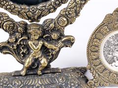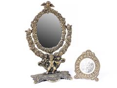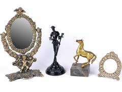 YUVARLAK FORMLU KAİDE ÜZERİ ŞÖVALYE FİGÜRÜ. H 20 CM. KARE FORMLU MERMER KAİDE ÜZERİ AT . H 16 CM. BRONZ ÇERÇEVELİ KABARTMA İŞÇİLİKLİ HAREKETLİ AYNA. H 29 CM. BRONZ RESİM ÇERÇEVESİ. H 11 CM.