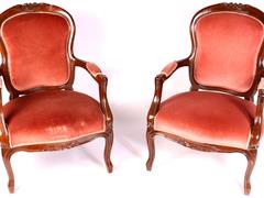 AHŞAP OYMA İŞÇİLİKLİ. OTURMA VE SIRT KISMI PEMBE KADİFE KUMAŞ KAPLI.