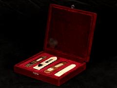 DEVE KEMİĞİ, BOYNUZ VE ABANOZDAN MAMÜL. KUTULU. UZ 13 CM.