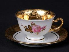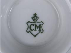 C.M. İMALAT DAMGALI. RENKLİ ÇİÇEKLERLE ALTIN YALDIZ DEKORLU.