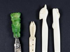 2 ADEDİ FİL DİŞİ. UZ 20 CM. 1 ADEDİ DEVE KEMİĞİ UZ 15 CM. 1 ADEDİNİN TUTAMAĞI YEŞİM TAŞI.