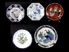 4 ADET JAPON İMALAT DAMGALI. MUHTELİF FORM VE FİGÜRLERLE DEKORLU. ÇAP 15,5 - 19 CM. 1 ADET ÇİN İMALAT DAMGALI. TAVUS KUŞU VE ALTIN YALDIZ EL DEKORLU.