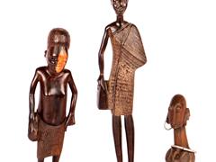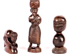 20. YY. AFRİKA ETNİK SANATI. KAZIMA VE OYMA İŞÇİLİKLİ. 5 ADEDİ ABANOZDAN MAMÜL. H 12-34 CM.