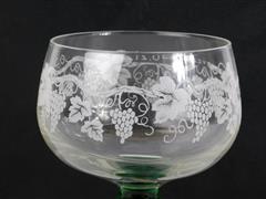 5 ADEDİ BOHEM KESME KRİSTAL KAHVERENGİ. H 12 CM. 1 ADET YEŞİL BURGU AYAKLI KADEH H 14 CM.