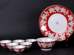 Lot 5 - 7 ADET PORSELEN KASE VE 1 ADET TABAK