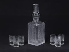KRİSTAL. 6 ADET KADEH VE 1 ADET KARAF. KARAF H 28,5 CM. KADEH 6,5 CM.