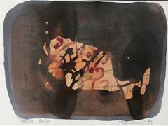 TEPSİDE BALIK. KARTON ÜZERİ SULUBOYA. İMZALI. 1982 T. 25X35 CM.