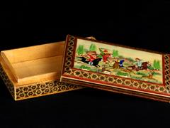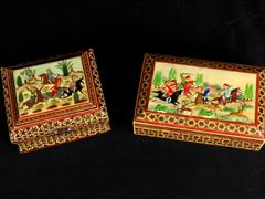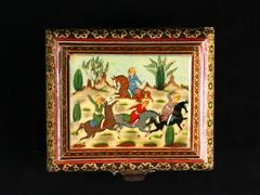 İRAN. DİKDÖRTGEN FORMLU KAPAK ÜSTÜ MİNYATÜR ÇALIŞMALI. 16X8X10,5 - 12X6X11 CM.