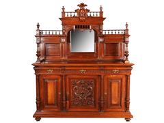 ALMAN. MARKMANN PETERSMANN DÜSELDORF DAMGALI. 3 KAPAKLI, 3 ÇEKMECELİ. KABARTMA VE OYMA İŞÇİLİKLİ. ÜST KISIM ORTASI AYNA MONTELİ. 171X60X200 CM.