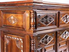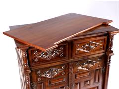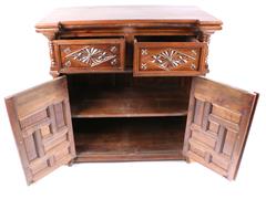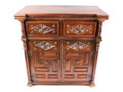 2 AHŞAP KAPILI VE 2 ÇEKMECELİ. KABARTMA VE OYMA İŞÇİLİKLİ. HAREKETLİ TABLALI. 89X92X52 CM.