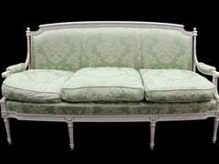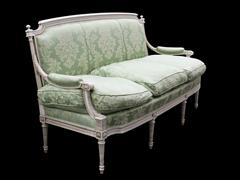 LAKE. ALTIN YALDIZ DEKORLU. ÜÇ KİŞİLİK, OTURMA VE SIRT KISMI YEŞİL DESENLİ SATEN KUMAŞ KAPLI.