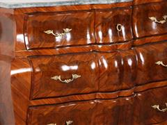 FRANSIZ. 15. LOUİS TARZI. BOMBELİ DİKDÖRTGEN FORMLU. ÇEKMECE ÜSTLERİNDE VE YAN TARAFLARINDA BULUNAN GÜL AĞACI MARKÖTERİ ÇALIŞMALAR, MOBİLYA USTALIĞINI MEYDAN ÇIKARMIŞ. 5 ÇEKMECELİ. MERMER TABLALI. 138X94X56 CM.