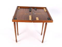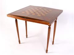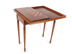 MARKÜTERİ İŞÇİLİKLİ. İÇ KISMI TAVLA VE SATRANÇ BÖLMELİ. TABLA 59X59 CM. H 58 CM.
