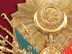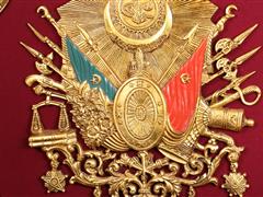 ALTIN VARAK AHŞAP ÇERÇEVELİ. ORTA KISIM KADİFE ÜZERİ OSMANLI DEVLET ARMASI MONTELİ. 108X84 CM.
