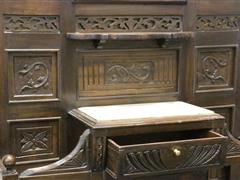 ORTA AVRUPA. KABARTMA VE OYMA İŞÇİLİKLİ. TEK ÇEKMECELİ. ORTA KISIM MERMER TABLALI. 90X215X25 CM.