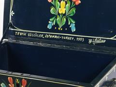 TEVFİK GÜLCÜLER İMZALI. 1993 TARİHLİ. TÜM YÜZEY RENKLİÇİÇEKLER İLE EL DEKORLU. 47X25X31 CM.