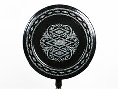 YUVARLAK FORMLU TABLA, SEDEF KAKMALI. KATLANIR FORMLU. ÇAP 55 CM. H 74 CM.
