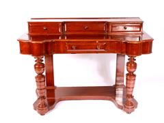 ARKADA DÜZ ÖNDE OYMA ÇİFT SÜTUN AYAKLI. TEK ÇEKMECELİ VOLANLI GÖVDE ÜZERİ 3 ÇEKMECELİ. 120X82X52 CM.