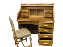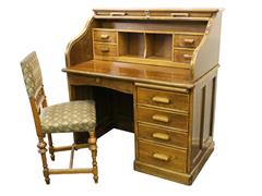 ORTA AVRUPA MASA. STOR KAPAKLI. 9 ÇEKMECELİ. 110X120X63 CM. SANDALYENİN OTURMA YERİ SIRT KISMI KUMAŞ KAPLI.