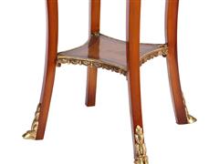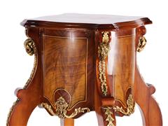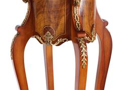 FRANSIZ. 4 AYAK ORTADAN BAĞLANTILI. BOMBELİ GÖVDE MARKÖTERİ İŞÇİLİKLİ, MUHTELİF STİLİZE MOTİFLERLE DEKORLU. TABLA 36X36 CM. H 117 CM.