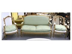 FRANSIZ. 1 ADET İKİLİ KANEPE, 2 ADET TEKLİ KOLTUK. TÜM AHŞAP GÖVDE OYMA VE KABARTMA İŞÇİLİKLİ.