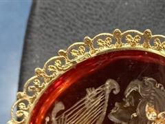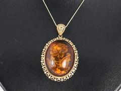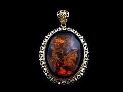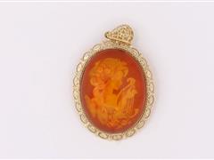 RUS İMALAT DAMGALI. 14 K ALTIN. KEHRİBAR ÜZERİ CAMEO. TOPLAM AĞIRLIK 10,69 GR. KEHRİBAR ÖLÇÜ 38X30 MM.
