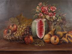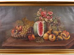 NATÜRMORT. TUAL ÜZERİ YAĞLIBOYA. İMZALI. 60X104 CM.