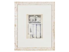 KOMPOZİSYON. KAĞIT ÜZERİ KARIŞIK TEKNİK. İMZALI. 23X15 CM.