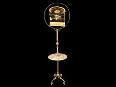 BRONZ AYAK ÜZERİ KUŞ KAFESİ MONTELİ. ORTA KISMI YUVARLAK MERMER TABLALI. H 205 CM. ÇAP 50 CM.