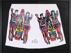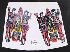 HORON OYNAYANLAR. BEZ ÜZERİ AHŞAP KALIP BASKI. 1991 T. 43X57 CM.