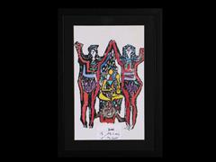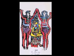 HORON OYNAYANLAR. BEZ ÜZERİ AHŞAP KALIP BASKI. 1991 T. 38,5X23,5 CM.