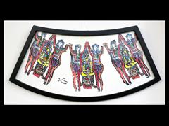 HALAY ÇEKEN EFELER. BEZ ÜZERİ AHŞAP KALIP BASKI. İMZALI. 1980 T. 45,5X100 CM.