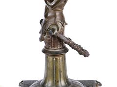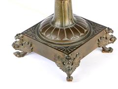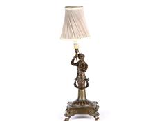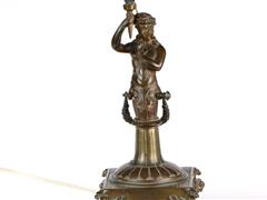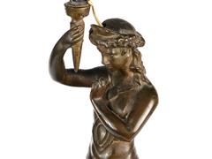 MEŞHALE TUTAN GENÇ KIZ HEYKELLİ. ÜSTTE KREM RENKLİ ŞAPKALI. TEK LAMBALI. H 54 CM.