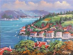 İSTANBUL BOĞAZI. TUAL ÜZERİ YAĞLIBOYA. İMZALI. 60X80 CM.