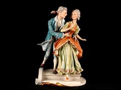İTALYAN. TOSCA SANATÇI İMZALI. İKİLİ FİGÜR. H 31.5 CM.