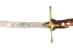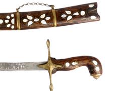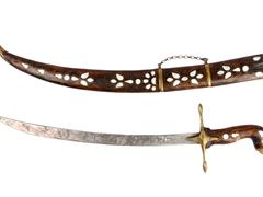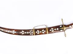 SEDEF KAKMALI. PİRİNÇ TEL GEÇMELİ. AHŞAP KINLI. UZ 86 CM.