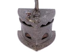 20.YY. ÜSTÜ AÇILIR, AHŞAP TUTAMAKLI, KABARTMA DESENLİ. 22X20X14,5 CM.
