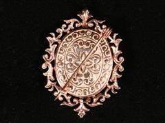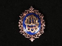 ANAYAR. MAŞALLAH YAZISI ÜZERİ 0,10 CT. ELMAS. MİNE İŞÇİLİKLİ. ARKA KISMI KALEM İŞÇİLİKLİ. KOLYE/BROŞ.