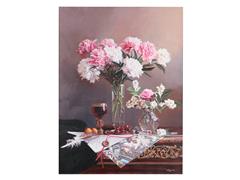 VAZODA ÇİÇEKLER. TUAL ÜZERİ YAĞLIBOYA. İMZALI. 80X60 CM.